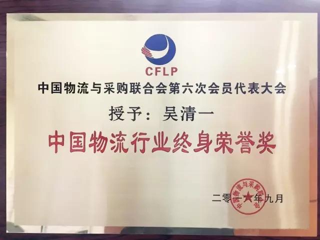 吳清一教授幾十年來為中國物流事業(yè)發(fā)展做出重大貢獻,尤其在托盤物流領(lǐng)域取得了矚目的成就,經(jīng)中國物流與采購聯(lián)合會研究決定,授予吳清一教授“中國物流行業(yè)終身榮譽獎”。